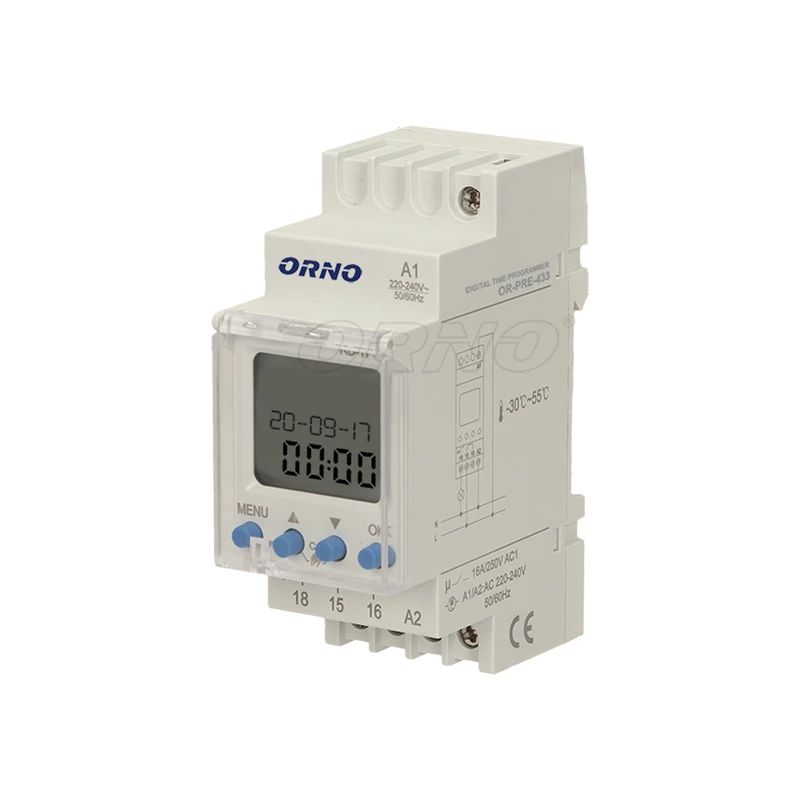 Az ORNO digitális időzítő DIN sínre szerelhető kialakítása gyors és egyszerű telepítést tesz lehetővé. Az intuitív kezelőfelület és a részletes programozási lehetőségek biztosítják, hogy az eszköz könnyen testreszabható legyen az egyedi igényeknek megfelelően. A három működési mód (KÉZI BE, AUTO, KÉZI KI) lehetővé teszi a rugalmas használatot, akár manuális vezérlésre, akár teljesen automatizált működésre van szükség.
