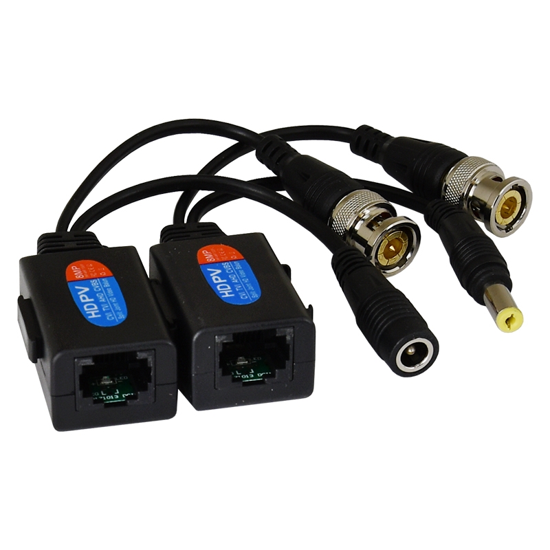 PULSAR passzív csavartérpáras videó- és tápfeszültség átalakító szett. Alkalmazás: P-TRPV1 is a set of passive devices used for HD video and power transmission using a twisted pair cable.. Videójel: 1,0Vp-p, 75Oh,m. Videó jeltovábbítási távolság (UTP5e vagy nagyobb):. 250m – HD-CVI(1080p), HD-TVI (720p/1080p), AHD (1080p). 350m – AHD (720p/960p). 450m – HD-CVI (720p). Operation of cameras up to 8 Mpx. Koaxvezeték impedanciája / csatlakozó típus: 75Ohm / BNC dugó (csatlakozóval 100 mm). Csavartérpáras oldali impedancia / csatlakozó típusa: 100Ohm / RJ45 aljzat. Csillapítás: - 0,5dB / 5MHz. Tápfeszültség / csatlakozó típus: aljzat/csatlakozó JACK 2,1/5,5. Működési feszültség: 12~15VDC. Áram (max.): 1A/12VDC. Méret: Szé=22 Ma=10 Mé=40 mm (vezeték – 180 mm hosszú).