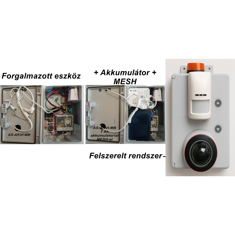 PirAna-MB – önálló összetett kültéri térérzékelő, mobil változat hang- és fényjelzővel 1. Rövid bemutatás Biztonságos térfigyelés emberfelismeréssel és kisállatvédelemmel Telepítést nem igényel, csak felprogramozást, teljes funkcionalitással Dobozra szerelt PROVISION PR-I4-340IPEN-36-V5 DDA2 analitikával, és „alarm in/out” kimenettel rendelkező kamera, valamint SATEL OPAL kültéri duál mozgásérzékelő vagy alacsonyra is szerelhető Optex QXI-DT-X5 (nincsenek az árban!) Dobozra szerelt analitikával, és „alarm in/out” kimenettel rendelkező kamera, (pl. PROVISION PR-I4-340IPEN-36-V5 DDA2 vagy hasonló tudású) valamint kültéri duál mozgásérzékelő (pl.SATEL OPAL vagy alacsonyra is szerelhető egyéb típus pl. Optex QXI DT-X5) (nincsenek az árban!) Saját szünetmentes tápegység (230V, 12V5Ah akkumulátor, mélykisülés védelem, kb. 8 óra nappali, és kb. 4 óra éjjeli üzemidő) Kamerában az SD kártyára, az éles eseménynek képeinek rögzítése Laptopról UTP kábellel, vagy Interneten keresztül programozható az RJ45 aljzaton keresztül Ugyanezen az aljzaton keresztül MESH, repeater vagy AP csatlakoztatható Wi-Fi Internet hálózathoz történő kapcsolódáshoz NVR-rel wifin keresztüli kapcsolat NVR + internet csatlakozás esetén push üzenetek (kép és film csatolás) élő kép és felvétel visszajátszás Működési elv A jeleket a logikai elektronika helyben dolgozza fel. A PirAna-MB a PirAna-SL alapmodell mobil, önálló működésre optimalizált változata, saját szünetmentes tápegységgel és vezeték nélküli internetkapcsolati lehetőséggel. Három érzékelési technológia összehangolt működése biztosítja a megbízható riasztást: PIR + MW + IP kamera analitika. Az események hang- és fényjelzéssel azonnal a helyszínen is jeleznek. A felvételek SD kártyára menthetők, Wi-Fi kapcsolat esetén NVR rendszerhez is integrálhatók Riasztás akkor indul, ha a mozgásérzékelő és a kamera analitika 10 másodpercen belül jelez. A jeleket a logikai elektronika helyben dolgozza fel. A rendszer aktiválja a helyi hang- és fényjelzést. Kiegészítő funkciók Ködérzékelés, elvakítás jelzés (opció) Műszaki adatok Paraméter Érték / Leírás Fh: admin Jelszó: Abcd8765+- Doboz méret 290 × 200 × 140 mm Védettség IP65 – kültéri alkalmazásra Tápellátás Saját szünetmentes egység + 230 V Érzékelők PIR + MW mozgásérzékelő, IP kamera analitika Videókapcsolat SD kártya rögzítés, vezeték nélküli internet (átjelzés opció) Csatlakozás Rejtett, burkolaton belüli elvezetés Alkalmazás Építkezések, ideiglenes telephelyek Mezőgazdasági létesítmények Kertes házak, nyaralók Kültéri értéktárolók Olyan zónák, ahol kisállatok előfordulnak, de élő őrzés nehezen megoldható Telepítés Gyors, felhasználóbarát beüzemelés 230 V csatlakoztatása+ Szükség esetén az OPAL ÉRZÉKELŐ ÉRZÉKENYSÉGÉNEK és a TERÜLETVÉDELMI ANALITIKA FIGYELÉSI TERÜLETÉNEK KIJELÖLÉSE szükséges Saját szünetmentes táppal önálló működés Riasztás és visszajelzés folyamata 1. Érzékelők együttes jelzése aktiválás. 2. Kép- és videómentés SD kártyára és/vagy NVR-re. 3. Helyi hang- és fényjelzés indítása. 4. „Éles” riasztás kontaktus riasztóközpontba kötési lehetőség 5. Internetes értesítés: pillanatkép + szöveg + rövid videó (push/email). 6. Élő kép megtekintése, utólagos visszajátszás SD kártyáról vagy NVR-ről.