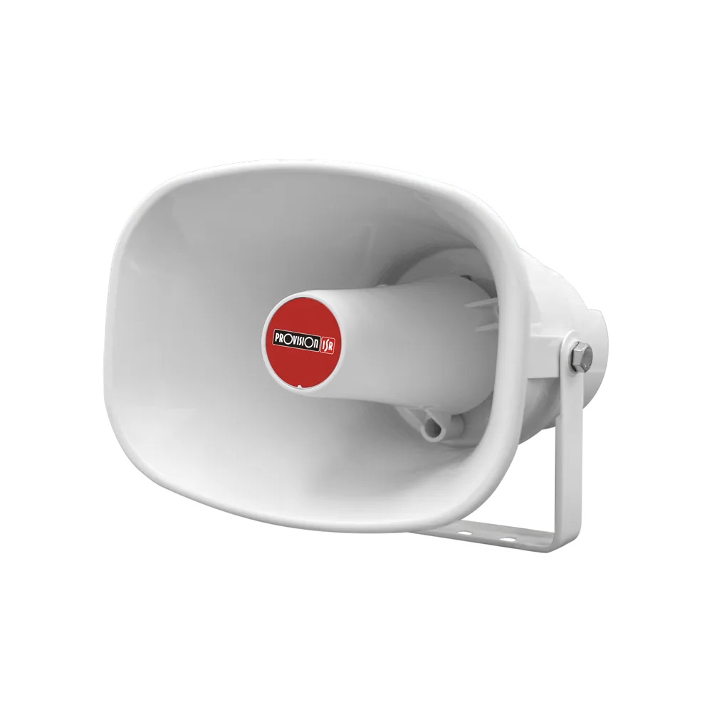 A PROVISION-ISR 15W IP Horn Speaker egy ipari minőségű, kültéri használatra tervezett IP-alapú hangszóró, amely alkalmas valós idejű és előre rögzített hangüzenetek továbbítására. A beépített 15 wattos erősítő és a 113 dB maximális hangnyomásszint lehetővé teszi a nagy hatótávolságú, jól érthető hangközvetítést. A készülék megfelel az IP67 védettségi szabványnak, így por- és vízálló kialakítása révén megbízható működést biztosít kültéri környezetben is.