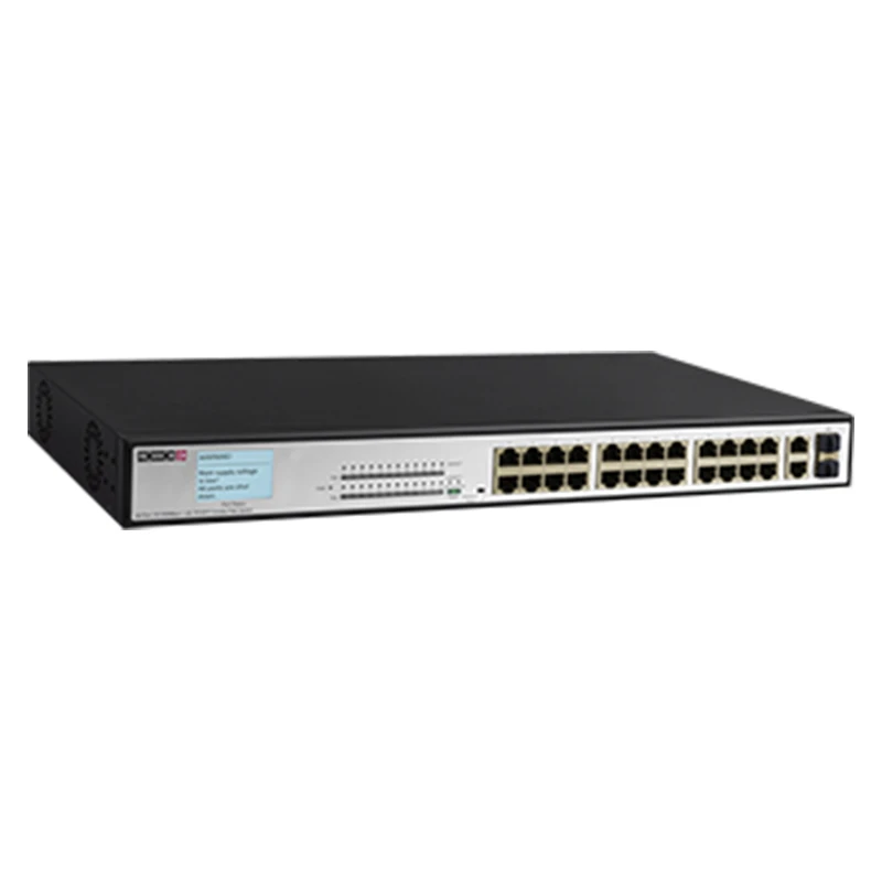 - Portok száma: 24 letöltési port (10/100 Mbps) és 2 feltöltési port (1 Gbps RJ45/SFP optikai kombinált port).