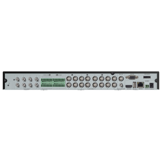 - Videó bemenet: 16 × BNC (AHD/TVI/CVI/CVBS), 8 × IP (max. 24 csatorna)