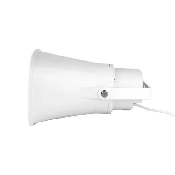 A PROVISION-ISR 15W IP Horn Speaker egy ipari minőségű, kültéri használatra tervezett IP-alapú hangszóró, amely alkalmas valós idejű és előre rögzített hangüzenetek továbbítására. A beépített 15 wattos erősítő és a 113 dB maximális hangnyomásszint lehetővé teszi a nagy hatótávolságú, jól érthető hangközvetítést. A készülék megfelel az IP67 védettségi szabványnak, így por- és vízálló kialakítása révén megbízható működést biztosít kültéri környezetben is.