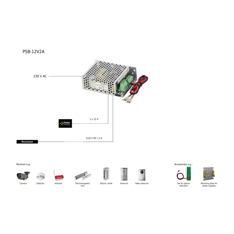PULSAR Kapcsolóüzemű Tápegység Akkumulátortöltővel – 13.8 VDC / 2.5 A