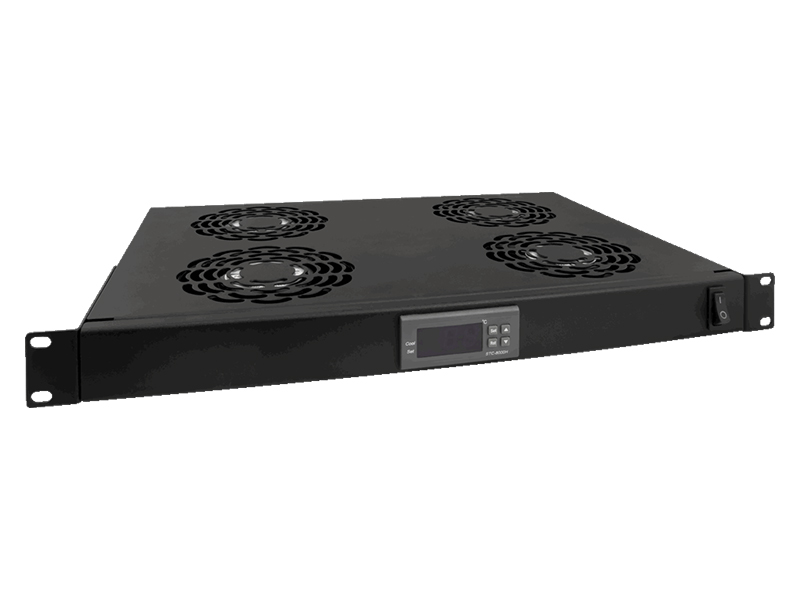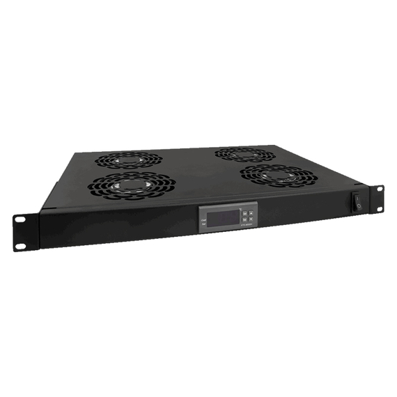 PULSAR 4-ventillátoros egység beépített termosztáttal rack szekrényhez, 19"/1U, 220-240Vac tápfeszültség