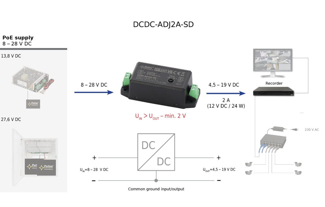 PULSAR DCDC-ADJ2A-SD – Állítható DC/DC feszültségcsökkentő átalakító (24V-12V, 2A)