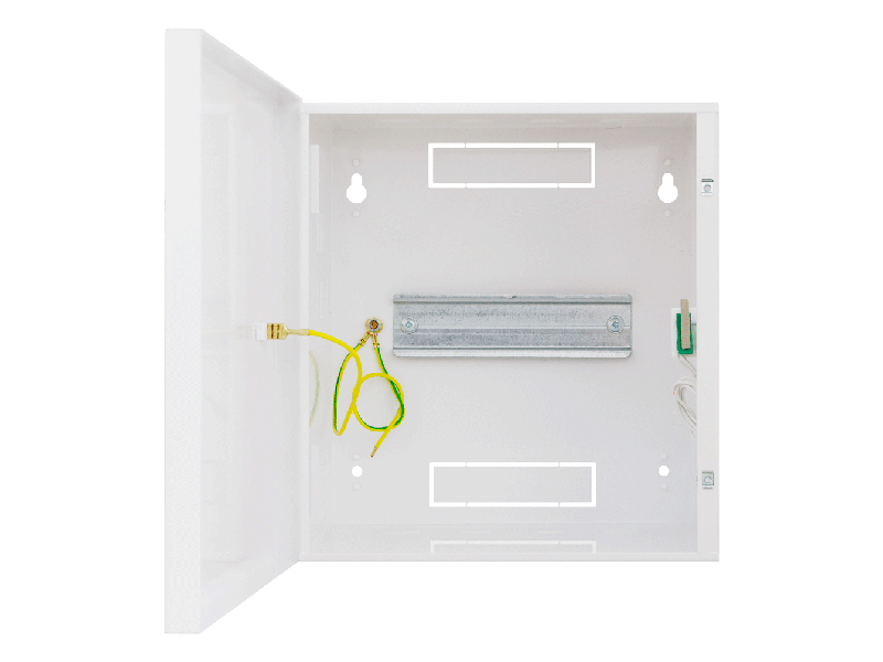 PULSAR Doboz DIN 1/150 felületszerelt. Alkalmazás: Kialakításának köszönhetően használható elektromos rendszerek részeként, automatizálási rendszerhez, CCTV, beléptető, vagyonvédelmi rendszerekhez, stb. DIN sínes belső rögzítéstechnika (TH35mm). A burkolat külső méretei: Szé=200, Ma=220, Mé+Mé1=150+8 [+/-2 mm]. External dimensions of the front panel: W1=205, H1=225 [+/-2 mm]. DIN sínek száma / hossz / „S” típus száma: 1 / 130mm / 7. Szabotázs védelem: tamper – doboz nyitása. Megjegyzés: felületszerelt doboz, zárás – csavarozott x2,faltól való távolság - 8mm, szín: RAL9003 - fehér