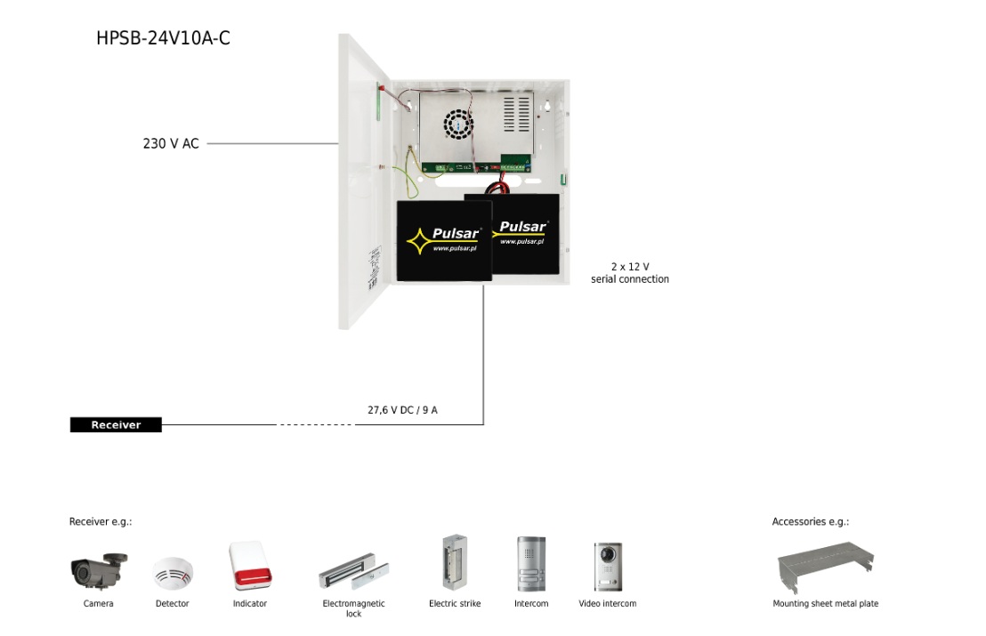 A HPSB 27,6V/10A/2x17Ah tápegység ideális választás olyan rendszerekhez, ahol elengedhetetlen a folyamatos tápellátás, még hálózati kimaradás esetén is. Különösen ajánlott:
