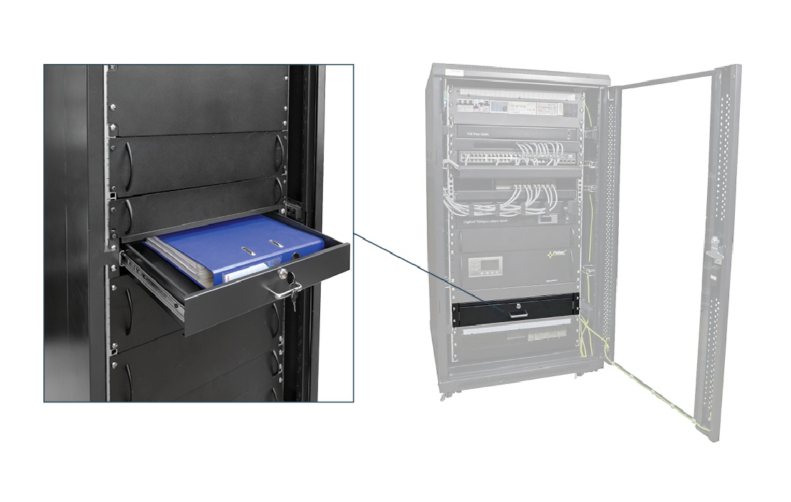 A fiók elsődleges célja a kiegészítők tárolása és rögzítése rack szekrényben. Kiválóan alkalmazható adatközpontokban, szervertermekben, ipari vezérlőszekrényekben vagy bármilyen olyan környezetben, ahol fontos a rendezett és biztonságos tárolás.