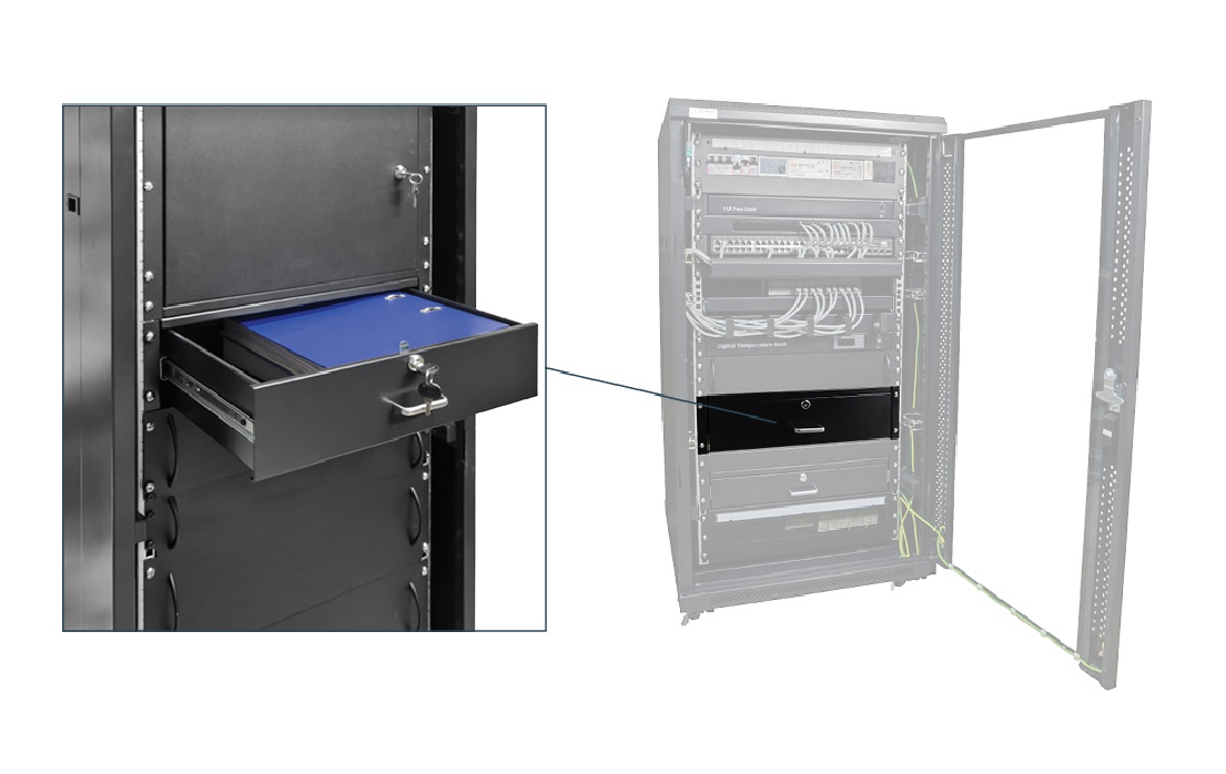 A 3U magas fiók kifejezetten kiegészítők tárolására és rögzítésére szolgál rack szekrényekben. Használata különösen ajánlott olyan rendszerekben, ahol fontos a gyors hozzáférés, de ugyanakkor a biztonságos elzárás is elvárás.