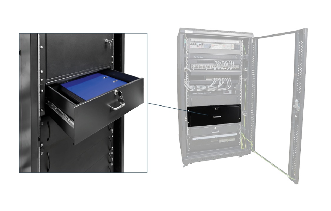 | Javasolt felhasználás | A 4U magas RACK fiók javasolt felhasználása kiegészítők tárolása, rögzítése a RACK szekrényban. |