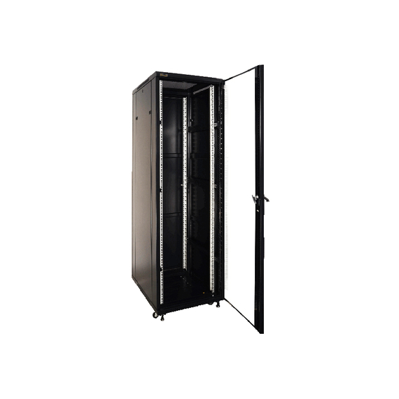 PULSAR RACK szekrény, álló kivitel, lapra szerelt 42U/600x1000. Javasolt felhasználás: A RACK 19” szekrény kiválóan használható CCTV, Beléptető, RTV, LAN vagy közepes/nagy cégek IT rendszereihez. 19” normál méretezésű szekrény, amelynek célja a beépített eszközök mechnaikus védelmének ellátása valamint ezek esztétikus szerelése. Méret:- rögzítés: Szé=19”, Ma=42U. - külső: Szé=600, Ma=2055, Mé=1000 [mm, +/-2]. Anyagok:- hidegen hengerelt acél SPCC 1,2mm, 1,5mm, 2mm - RAL 9004. Terhelhetőség: 800kg. Megjegyzés:- tartozék: 4db nem rögzíthető görgő, 4db szintező láb. - zárható elsőajtó (2 kulcs tartozék). - zárható hátsóajtó (2 kulcs tartozék). - lapraszerelt