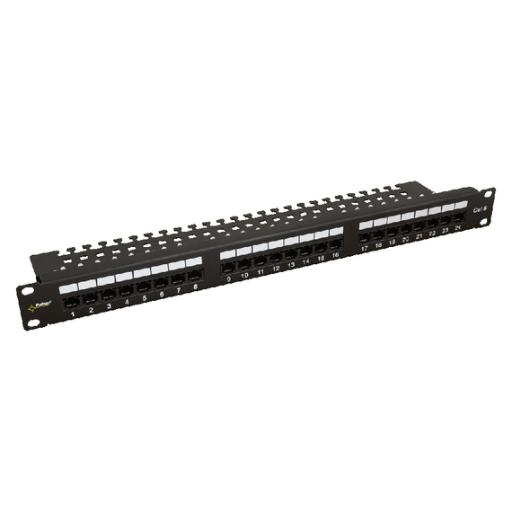 PULSAR RP-U24V6 javítópult 24 port / UTP / Cat6. Alkalmazás: A javítópanel a RACK19 ”szekrények strukturált hálózati kábelezésének utolsó eleme. A telekommunikációs hálózatok alapvető eleme. A javítópanel típusa: 24 port / UTP / Cat 6. Szerelési méretek: Szé = 19 ”, Ma = 1U. Anyagok: acéllemez 1,2 mm, fekete színű RAL 9004. Megjegyzések: - LSA csatlakozócsík, vízszintesen felszerelve (kábelkötegek). - Az RJ45 csatlakozók leírása és számozása az előlapon. - négypontos rögzítés az első RACK sínre. - 4 M6 csavar + ketrec anyák + kábelkötegek