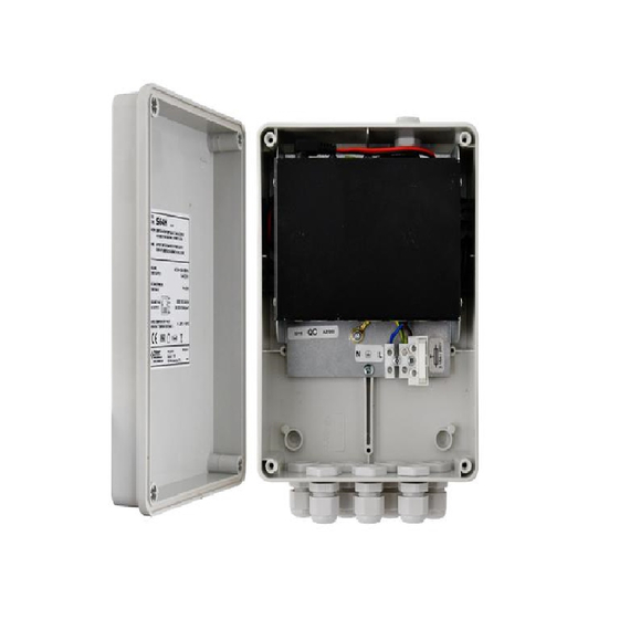 A switch hermetikusan zárt, IP56 védettségű házban kapott helyet, amely kiváló védelmet nyújt por, fröccsenő víz és egyéb környezeti hatások ellen. A világosszürke ABS műanyag burkolat nemcsak tartós, de esztétikus megjelenést is biztosít, így jól illeszkedik bármilyen telepítési környezetbe. A beépített 52 V DC / 60 W-os tápegység stabil és megbízható energiaellátást nyújt, miközben a rövidzárlat- (SCP) és túlterhelés elleni védelem (OLP) gondoskodik a rendszer biztonságos működéséről.