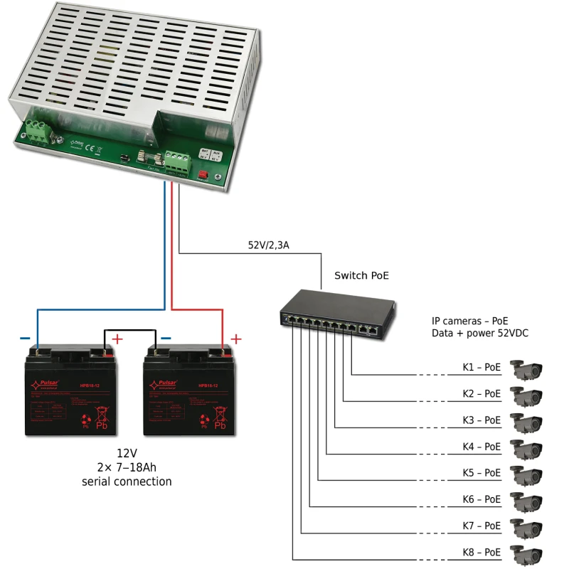 PULSAR Tápegység POE-s Akkumulátortöltővel