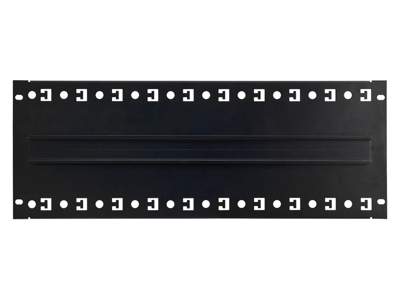 PULSAR RACK 19” szekrénybe építhető 4U magas szerelőlemez DIN-TH35-24xS sínnel. Javasolt felhasználás: DIN sínes eszközök RACK szekrénybe való építéséhez ( javasoltan hátsó részre ). Acéllemezre épített DIN sín, amely gazdaságos kiváltója lehet a az ARADIN dobozoknak. A lemez vezetékrögzítő füleket tartalmaz, amelyekhez hozzá lehet bilincselni a kábeleket. Szerelési méret: Szé=19", Ma=4U. Anyag: fémlemez DC01, 1,0mm vagstag , RAL9005 + TH35 sín. Megjegyzés:- ‘S’ típusú biztosíték befogadása, max.24 darab. - rögzítés 4 csavarral a RACK első sínén. - 4 M6 csavar és kosáranya tartozék
