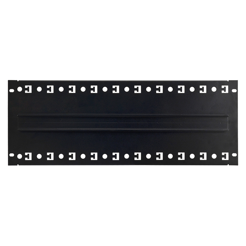 PULSAR RACK 19” szekrénybe építhető 4U magas szerelőlemez DIN-TH35-24xS sínnel. Javasolt felhasználás: DIN sínes eszközök RACK szekrénybe való építéséhez ( javasoltan hátsó részre ). Acéllemezre épített DIN sín, amely gazdaságos kiváltója lehet a az ARADIN dobozoknak. A lemez vezetékrögzítő füleket tartalmaz, amelyekhez hozzá lehet bilincselni a kábeleket. Szerelési méret: Szé=19", Ma=4U. Anyag: fémlemez DC01, 1,0mm vagstag , RAL9005 + TH35 sín. Megjegyzés:- ‘S’ típusú biztosíték befogadása, max.24 darab. - rögzítés 4 csavarral a RACK első sínén. - 4 M6 csavar és kosáranya tartozék