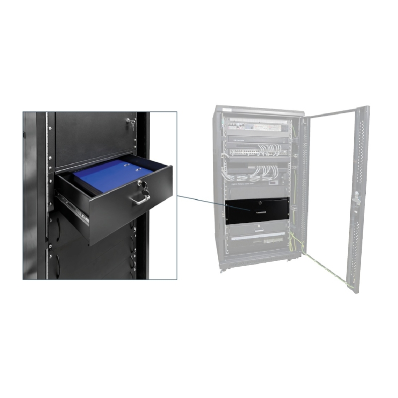 PULSAR rack fiók 4U, kiegészítők tárolása rack szekrényben, zárható, 19"/4U