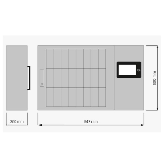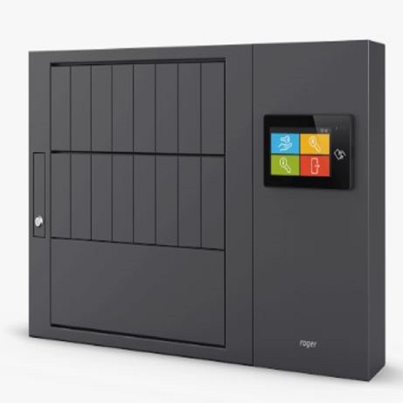 ROGER Elektronikus kulcsszekrény egyedi kulcstartókkal és 7"-os érintőképernyős kezelőpanellel, 16 kulcstartót tartalmazó változat, 16 RFID azonosító kulcstartó, a kulcstartókat a felhasználó rögzíti a kulcsokhoz, 230 VAC tápellátás
