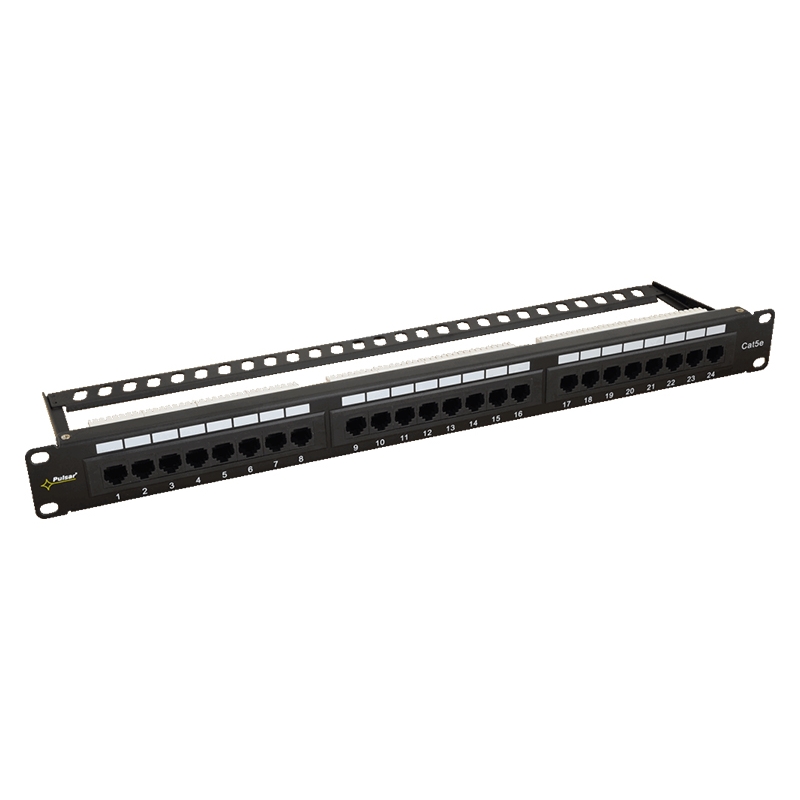 PULSAR RP-U24H5 javítópanel 24 port / UTP / Cat5e. Alkalmazás: A javítópanel a RACK19 ”szekrények strukturált hálózati kábelezésének utolsó eleme. A telekommunikációs hálózatok alapvető eleme. A javítópanel típusa: 24 port / UTP / Cat 5e. Szerelési méretek: Szé = 19 ”, Ma = 1U. Anyagok: acéllemez 1,2 mm, fekete színű RAL 9004. Megjegyzés: - LSA csatlakozócsík, függőlegesen felszerelve (kábelkötegek). - Az RJ45 csatlakozók leírása és számozása az előlapon. - négypontos rögzítés az első RACK sínre. - 4 M6 csavar + ketrec anyák + kábelkötegek