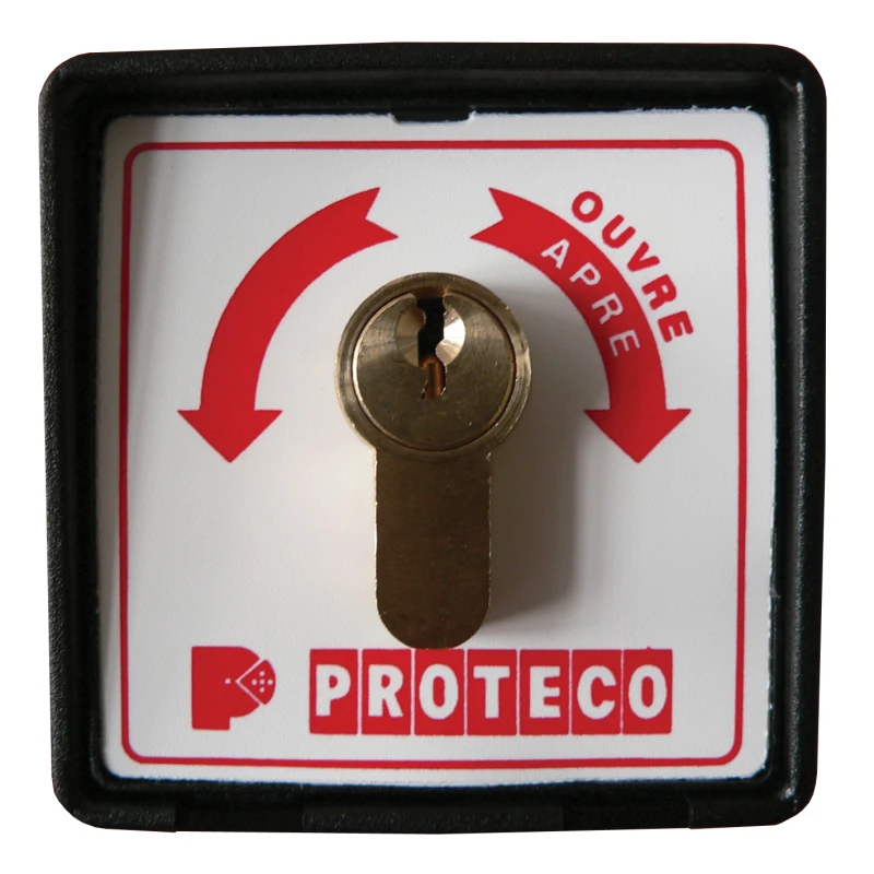 PROTECO Kulcsos kapcsoló, kétállású,rugós, műanyag házas, impulzusos, egy záró érintkező, a kulcs nélkül nem lehet szétszedni. Olasz