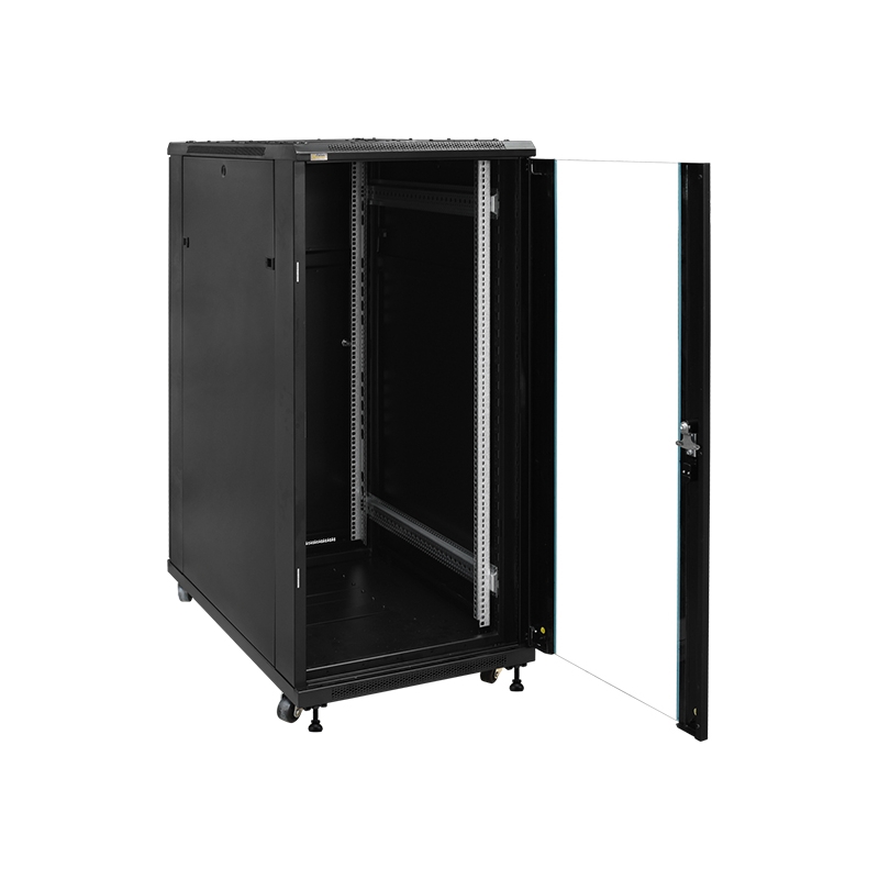 PULSAR RACK szekrény 27U, álló kivitel, lapraszerelt 600x1000. Javasolt felhasználás: A RACK 19" szekrény kiválóan használható CCTV, Beléptető, RTV, LAN vagy közepes/nagy cégek IT rendszereihez. 19" normál méretezésű szekrény, amelynek célja a beépített eszközök mechnaikus védelmének ellátása valamint ezek esztétikus szerelése. Méret:- rögzítés: Szé=19", Ma=27U, Mé=760mm. - külső: Szé=600, Ma=1388, Mé=1000 [mm, +/-2]. Anyagok:- hidegen hengerelt acél SPCC 1,2mm, 1,5mm, 2mm – RAL 9004. Terhelhetőség: 1000kg. Megjegyzés:- tartozék: 4db nem rögzíthető görgő, 4db szintező láb. - zárható elsőajtó (2 kulcs tartozék). - zárható hátsóajtó (2 kulcs tartozék). - lapraszerelt