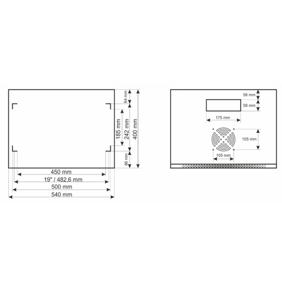 | Szerelési méret | 19" x 6U |