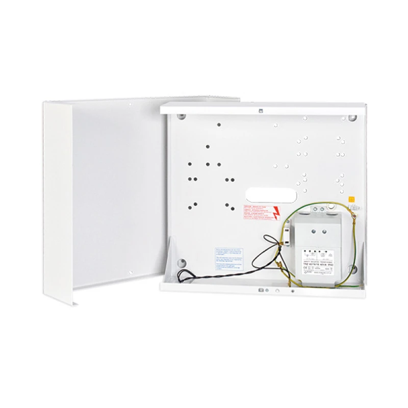 A SATEL fém ház transzformátorral egy professzionális kivitelű, falra szerelhető központi doboz, amelyet riasztóközpontok és bővítő modulok biztonságos elhelyezésére terveztek. A termék kialakítása megfelel az EN 50131 szabvány 3. fokozatának, így magas szintű mechanikai és elektronikai védelmet biztosít behatolásjelző rendszerek számára. A beépített 40 VA teljesítményű transzformátor stabil tápellátást biztosít a csatlakoztatott eszközöknek.