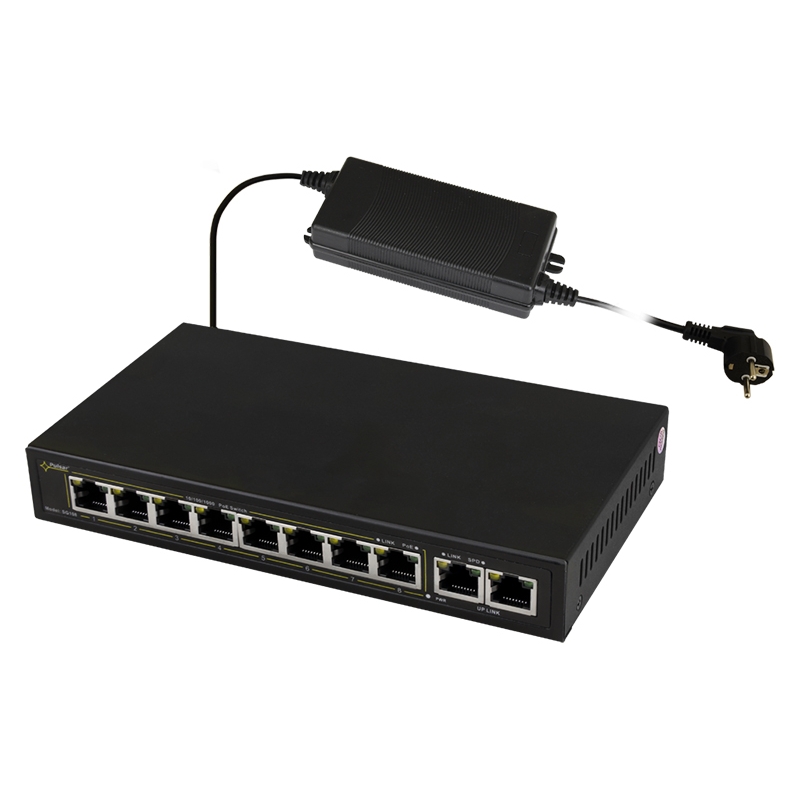 A PULSAR SG108-90W egy kiváló ár-érték arányú, ipari minőségű switch, amely tökéletesen illeszkedik a modern IP alapú videómegfigyelő rendszerek követelményeihez.