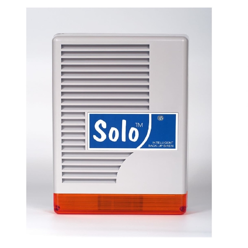 SOLO Kültéri nyomókamrás hang és fényjelző, 13.8Vdc, 2.4A, nyugalmi max 1mA, hangfreki: 800 - 1900 Hz, 128dB, IP34, 180x270x90, 2kg - Tetszetős kialakítású, a hozzá adott sablonnal könnyű szerelni. A tető teljes egészében eltávolítható a szirénáról!