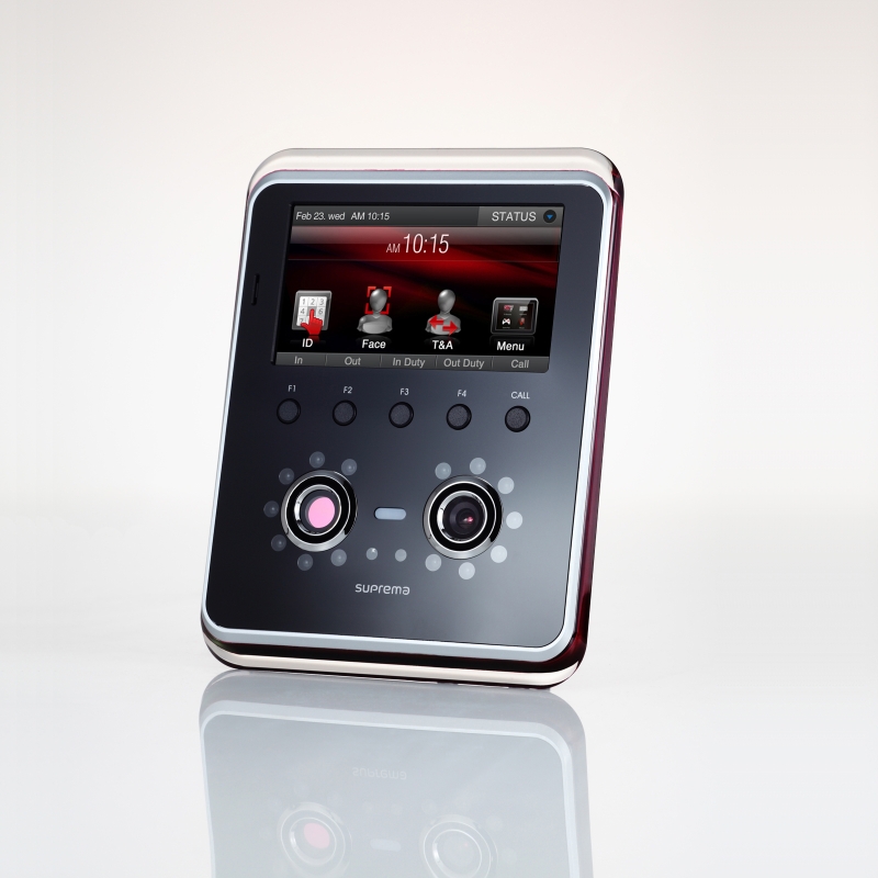 SUPREMA FaceStation érintőképernyős munkaidőnyilvántartó terminál, arcfelismerés, SUPREMA szabadalmaztatott algoritmus, max. 1:1000 azonosítási sebesség, 1 látó fényben + 1 IR kamera, automatikus IR megvilágítás vezérlés, 4,3" WVGA LCD kijelző, grafikus felhasználó felület, 13,56 MHz Mifare olvasó, max. 10,000 felhasználó, max. 10,000 (1:1) vagy 1,000 (1:N) minta, 1,000,000-os esemény és 10,000-es képnapló, TCP/IP, Wiegand, 2 csatornás RS485, RS232 kommunikációs illesztők, 4 TTL I/O, 2 relékimenet max. 1A/125Vac 37VA, USB, SD kártyafoglalat, beépített előlapi kamera, fényképkészítés és videokaputelefon funkcióhoz, beépített mikrofon és hangszóró, 667MHz RISC, 1,1GHz DSP, 4GB Flash+512MB, szabotázsvédelem, tápfeszültség 12 Vdc, PoE, méret 132x165x60 mm, működési hőmérséklet - 20’C~50’C
