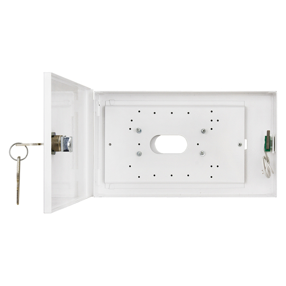 PULSAR Kezelő Doboz LCD/B. Tervezett felhasználás: DSC, FBII, SCANTRONIC, ROKONET, PARADOX, NAPCO, SUMMIT, SATEL, CADDX NETWORX. A burkolat külső méretei: Szé=235, Ma=135, Mé=42 [+/- 2mm]. Szabotázs védelem: tamper – doboz nyitása. Megjegyzés: Felületre szerelhető doboz, zárás - zárral assembly