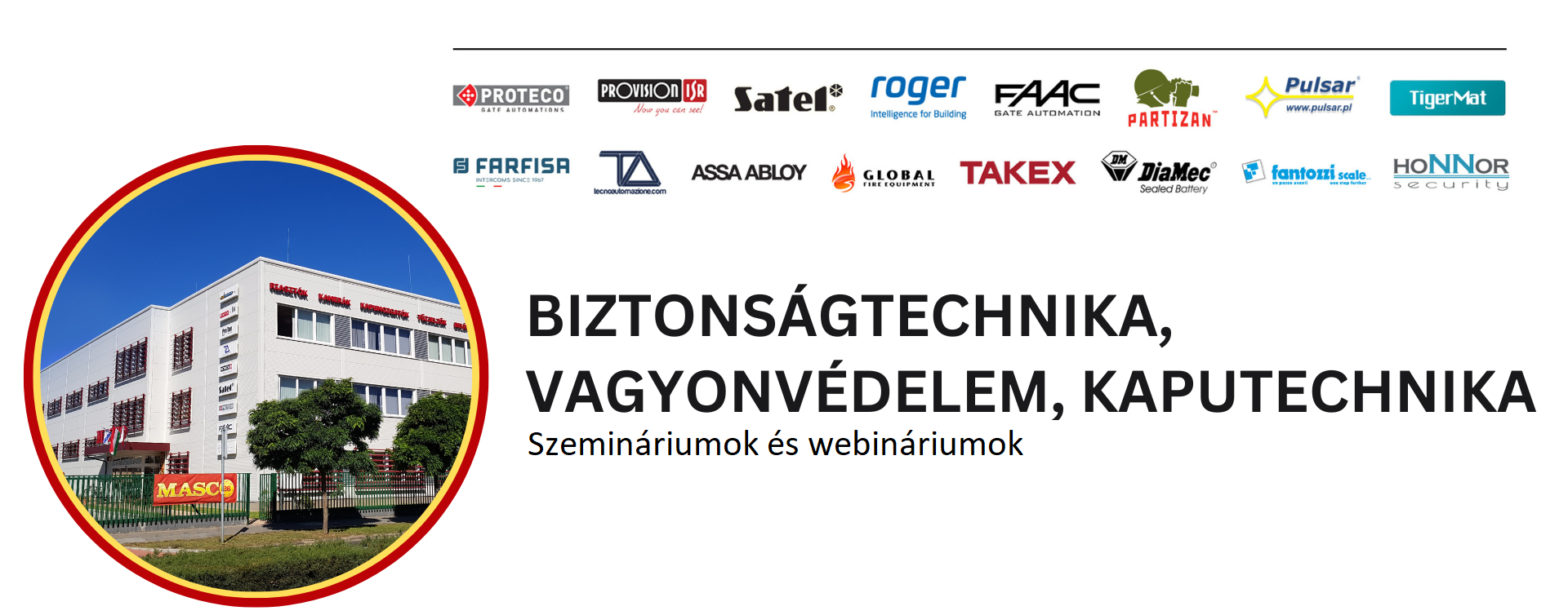 A MASCO Kft. számára egyaránt fontos, hogy megbízható és jó minőségű termékek mellett a biztonságtechnikai eszközök technikai fejlődésében bekövetkező változásokat megosszuk Ügyfeleinkkel. Ezért tartunk minden évben, olyan személyesen látogatható szemináriumokat, melyeket elérhetővé is tehetünk az online térben is webinárium formájában.