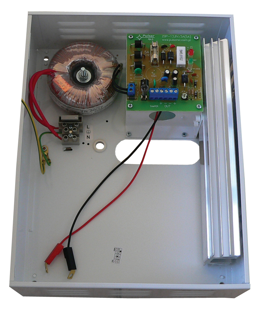 PULSAR Szünetmentes lineáris tápegység szabotázsvédett fém dobozban. 80VA, 13.3-13.8V/3-5A, 307x237x95mm.