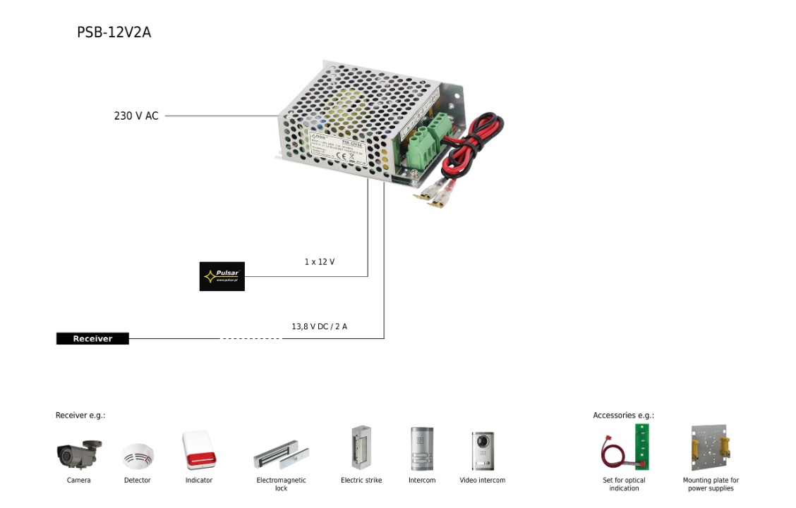 PULSAR Tápegység, kapcsolóüzemű akkumulátortöltővel, kimenet 13.8 Vdc/2.5 A, 12~14 Vdc között állítható kimeneti feszültség