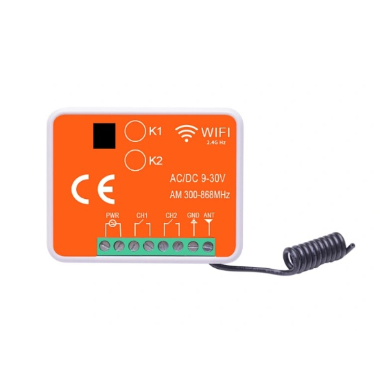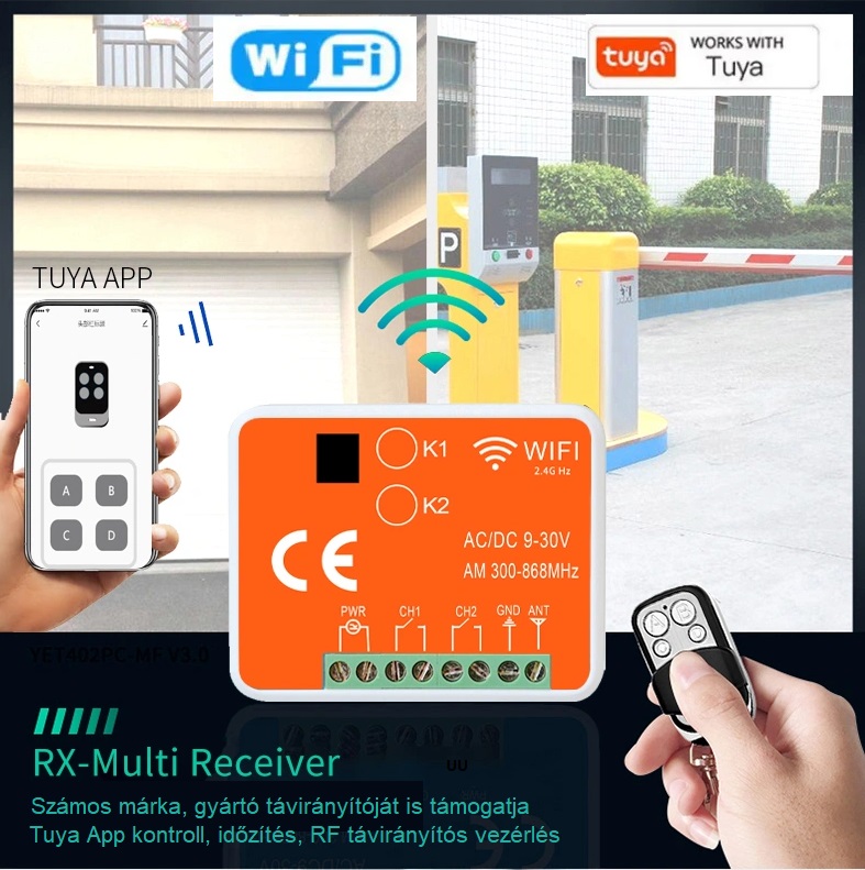 TIGERMAT TM-YET402WTR-MF univerzális vevő RX Multi Wifi 2 csatornával 433-868 MHz, Tuya alkalmazással is működtethető