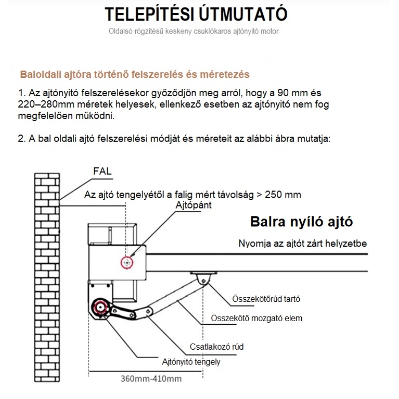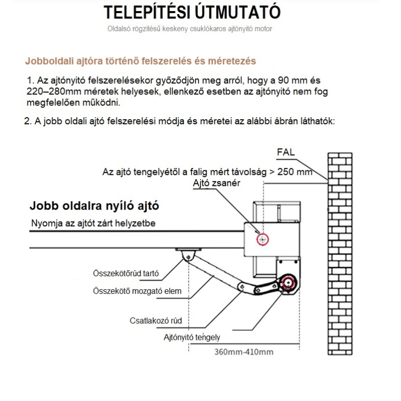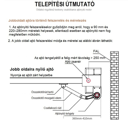 TIGERMAT TM-RS-140 Oldalsó rögzítésű keskeny csuklókaros ajtónyitó motor és vezérlés