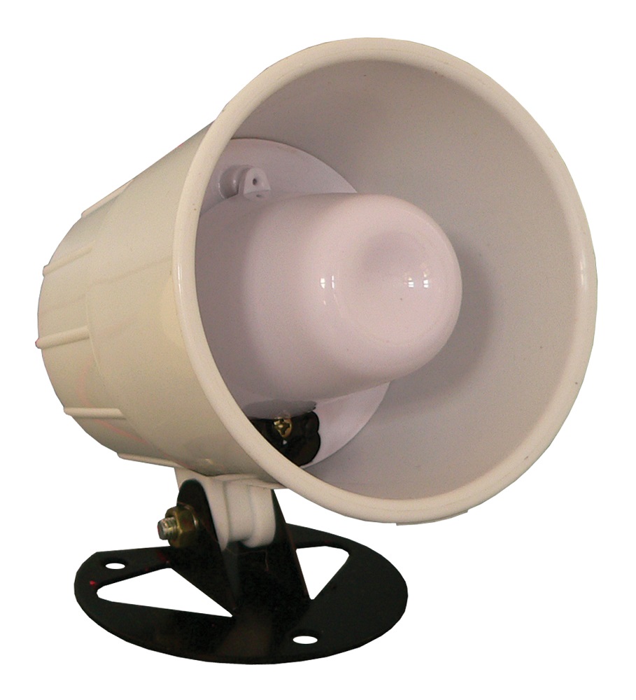 SOLLEYSEC Kültéri Tölcséres Sziréna - 100x100mm, 10/15W, 12V DC, 115dB, Fehér