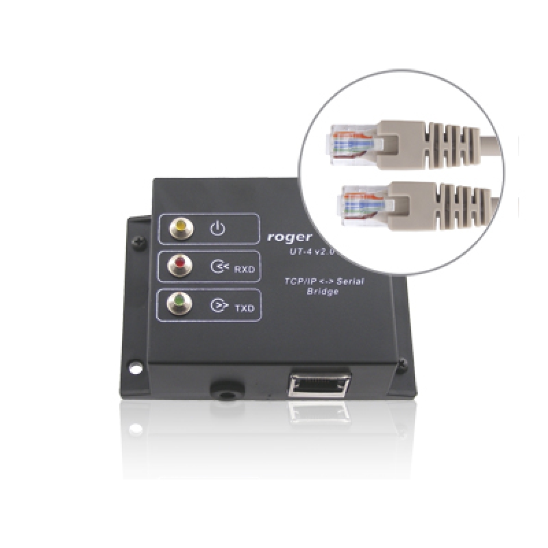 ROGER Kiegészítő, RACS 4, kommunikációs interfész, RS-485/TCP/IP, 10-15 VDC, átlag 75mA, max. 150mA, RS232, RxD, TxD, RTS, CTS, GND, RS485, TxA, TxB, RxA, RxB, 110g, 100x68x35,