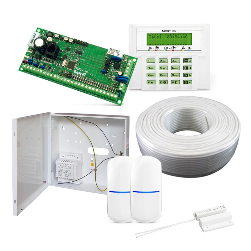 A SATEL VERSA 10 egy moduláris felépítésű, 10 zónás riasztórendszer szett, amely kis- és közepes méretű objektumok – például lakóingatlanok, irodák, üzlethelyiségek – behatolás elleni védelmére lett tervezve. A rendszer központi egysége a SA-VERSA 10 típusú vezérlőpanel, amely beépített PSTN telefon kommunikátorral rendelkezik, lehetővé téve a riasztási események továbbítását távfelügyeleti állomásra vagy felhasználói értesítés céljából. A szett tartalmazza a szükséges kezelőegységet, érzékelőket, tápegységet és kábelezést a rendszer alaptelepítéséhez.