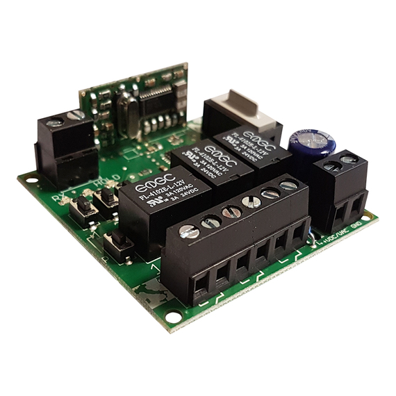 A TECNO 3 csatornás rádióvevő egy professzionális felhasználásra tervezett, megbízható és sokoldalú vezérlőegység, amely ideális választás kapuvezérlő rendszerekhez, riasztókhoz, automatizálási megoldásokhoz és más ipari vagy lakossági alkalmazásokhoz. A készülék támogatja a 434 MHz-es frekvenciasávot, és képes fix valamint ugrókódos adók fogadására is, így széles körű kompatibilitást biztosít.