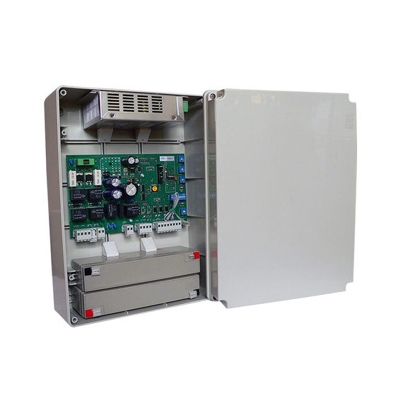 A vezérléshez tartozik egy UPC PACK, amely két darab 12V 2,2Ah akkumulátort tartalmaz. Ez biztosítja a rendszer folyamatos működését áramkimaradás esetén is.