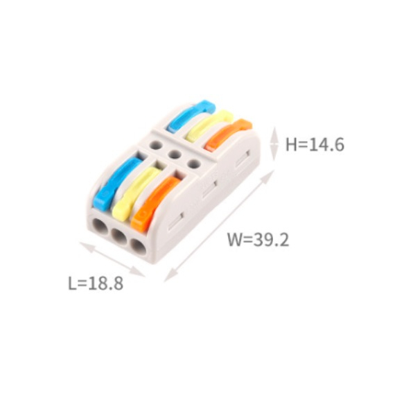 SOLLEYSEC WAGO rendszerű elektromos gyorscsatlakozó rendszer kapcsos-rugós, 2x3 6 tű, 3 eres vezetéket kábelt összeköt told (pl. fázis + nulla + föld),