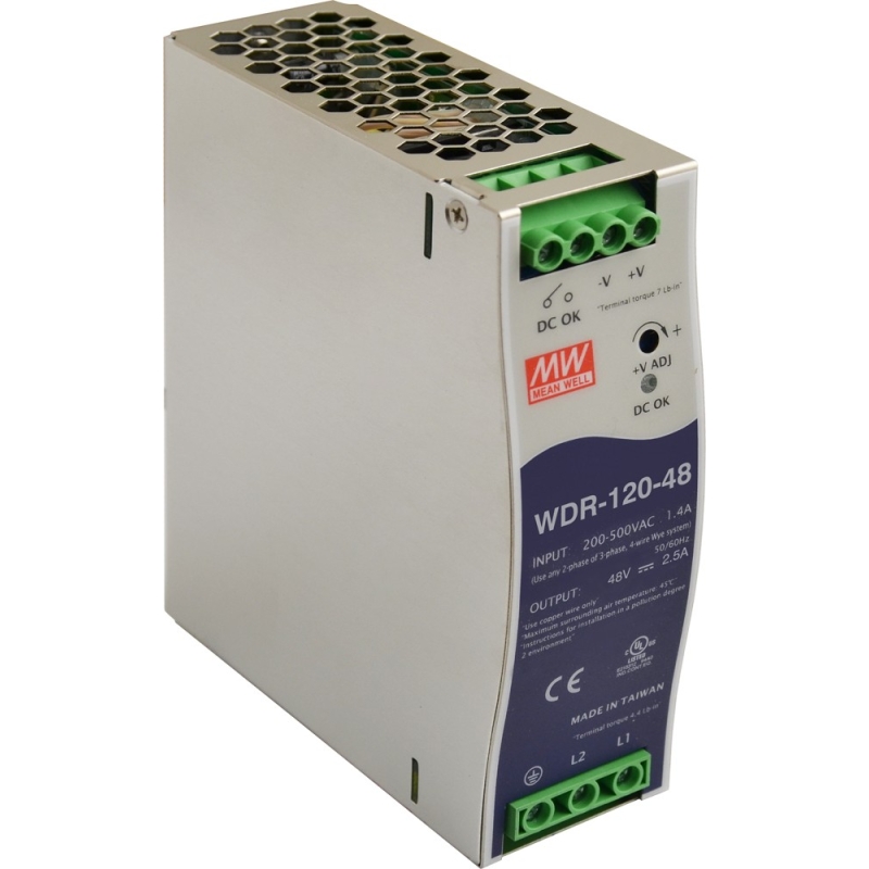 WDR 48V/120W/2.5A DIN sínes tápegység – széles bemeneti tartomány, állítható kimenet, ipari védelemmel